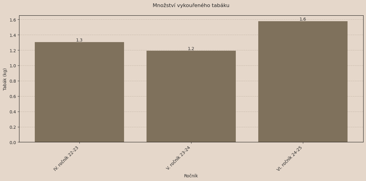 | Množství vykouřeného tabáku | 1 kg 575 g | 1 kg 191 g | 1 kg 305 g |