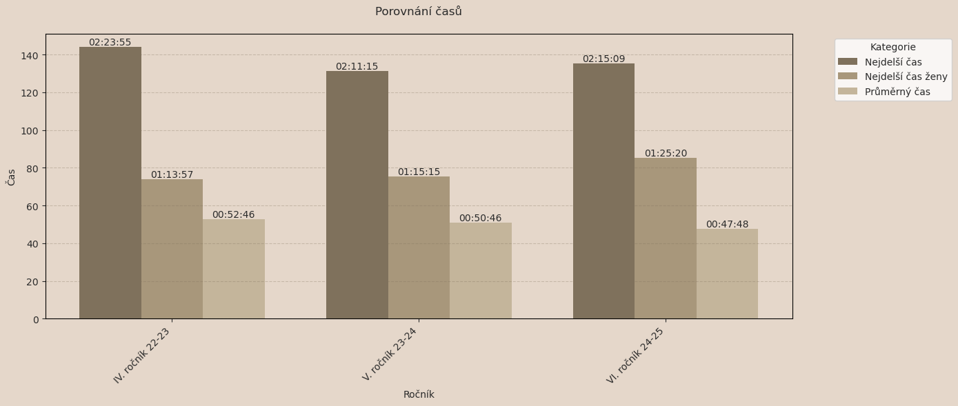 | Průměrný čas všech účastníků | 00:47:49 | 00:50:46 | 00:52:46 |